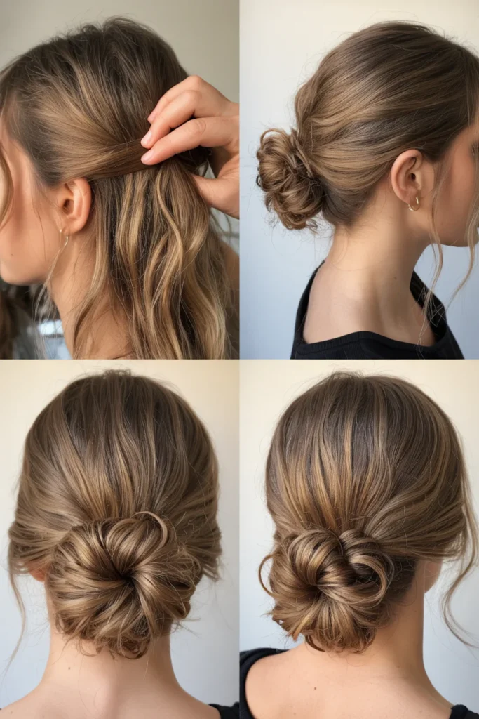 - Styling involves gentle teasing at the roots, loose gathering, and soft pinning, making it easy to achieve without precision, perfect for both beginners and quick styling routines.