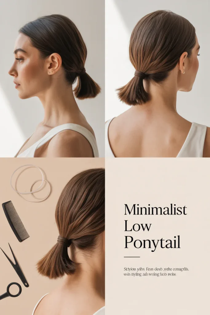 The minimalist low ponytail is a sleek, understated hairstyle that sits neatly at the nape, creating a clean and refined silhouette. Its simplicity enhances natural texture while offering a polished look suitable for both casual days and formal settings.
