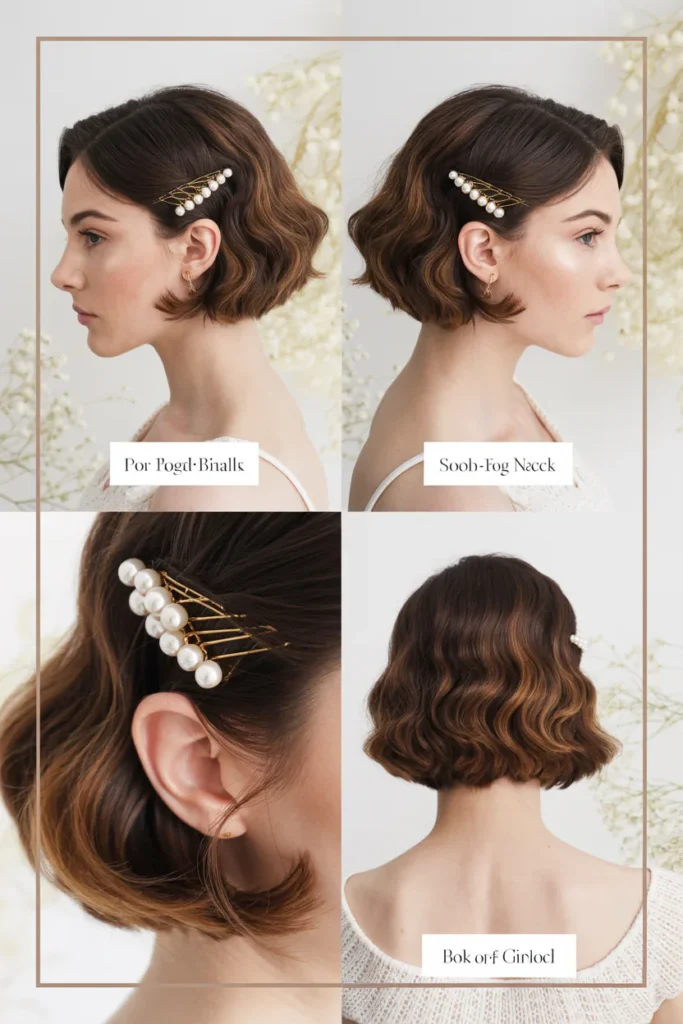 - Styling usually involves a smooth blowout or soft wave using a flat iron or curling wand, followed by strategic placement of pearl accessories for a balanced, intentional look.