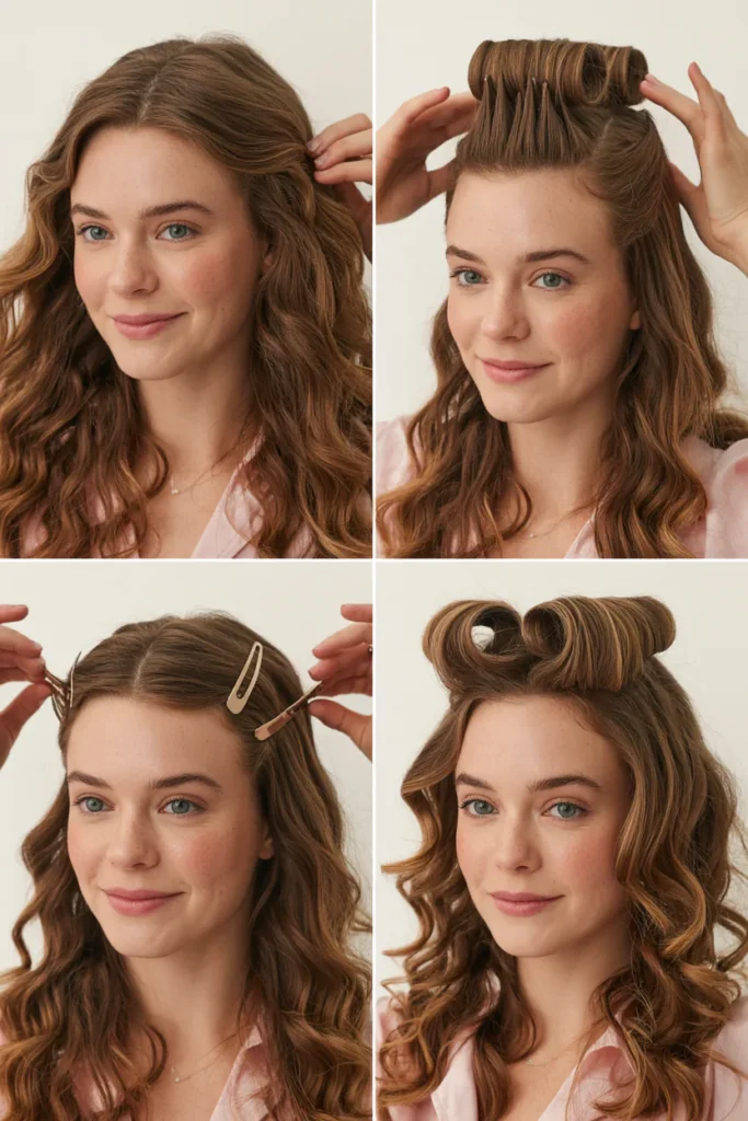 • Styling involves teasing or using volumizing powder at the crown, securing the top section, and curling the lower layers with a wand for soft, bouncy definition.