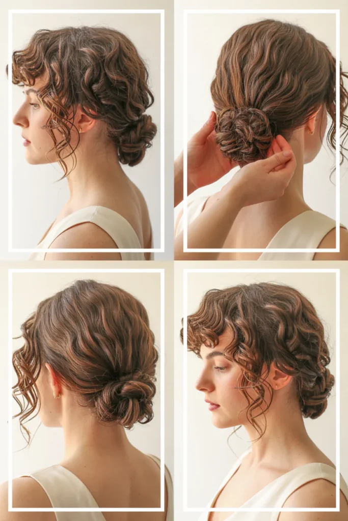 • Styling typically involves curling sections first, then loosely pinning them into a low bun, making it manageable for professionals and moderately skilled individuals to recreate.