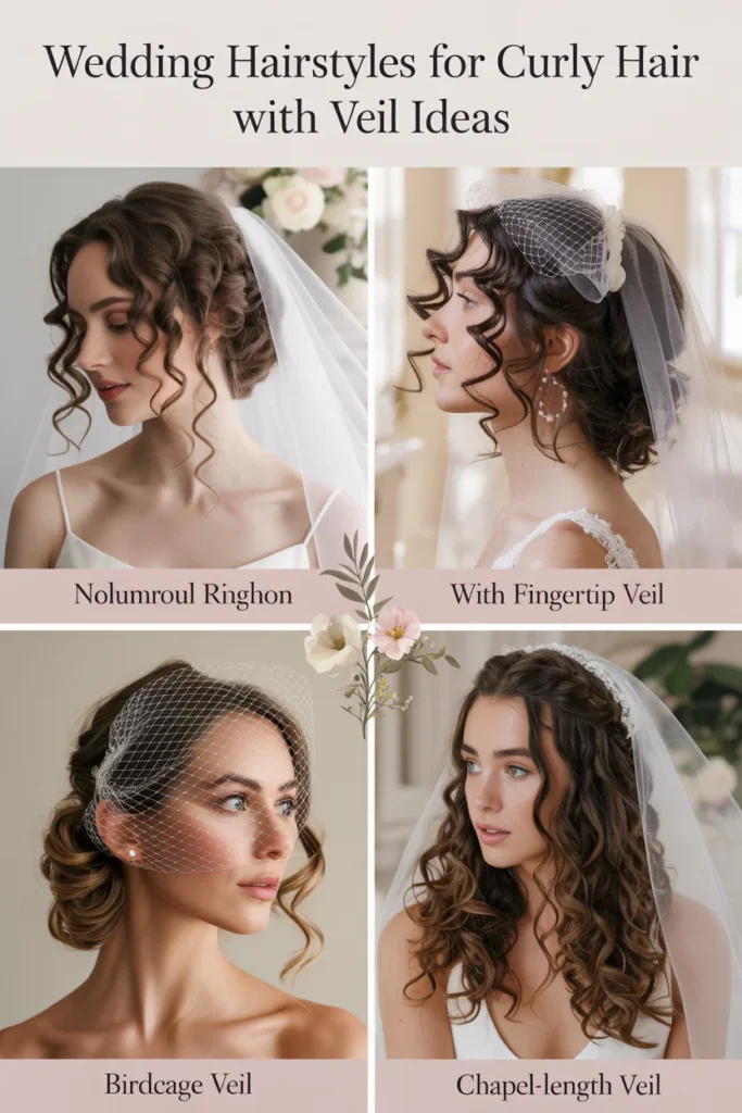 Curly hair creates a naturally romantic base for bridal styling, especially when paired with a veil that enhances its texture and movement. The right hairstyle balances structure and softness, allowing curls to frame the face while securely supporting the veil. From loose updos to defined half-up styles, these looks offer volume, elegance, and long-lasting hold for the big day.