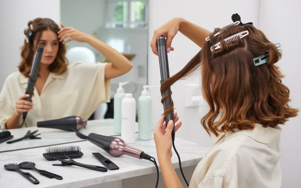 You cannot style dirty hair well. Oil and product buildup make hair heavy and flat. If you washed your hair the night before, just spritz it with water using a spray bottle. Hair should feel slightly damp, not soaking wet. For dry styling, make sure hair is completely dry before you begin. Many people skip this basic step. Do not be one of them. Clean hair holds curls, waves, and straight styles much longer.